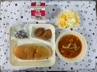 今日の一口トンカツは、給食室でひとつひとつ丁寧に衣をつけて油であげました。