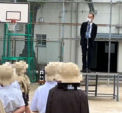 朝の全校朝会で校長先生から、「いじめは絶対にゆるすことができない行為」であるといじめについてのお話がありました。