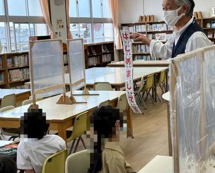 図書室での約束や本の借り方、本の分類のされ方など説明しました。今は、本があまり好きでないという子もいるかもしれませんが、本から学ぶことも多いです。ぜひ本に親しむようになってください。