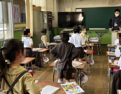 1年生は教科書を見ないで、音読をしていました。とても良い姿勢で大きな声で読みことができていました。