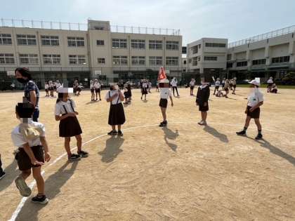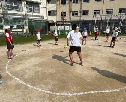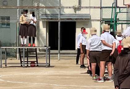 集会委員がルールの説明をした後、最初は、各グループの班長や副班長が鬼になりました。なかなか当てるのは難しそうでした。