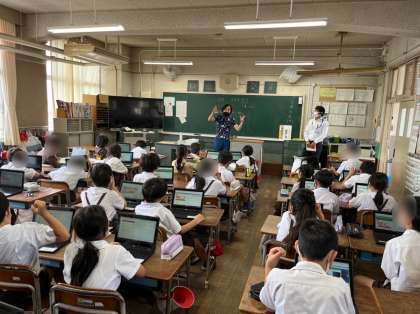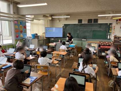 今日は、学校にICT教育アシスタントの方がサポートに来てくれています。2年生、3年生では、アシスタントの方にお手伝いいただきながら、ICT端末の活用について学習しました。難しい手順もありますが、繰り返して使うことが上達への近道ですね。