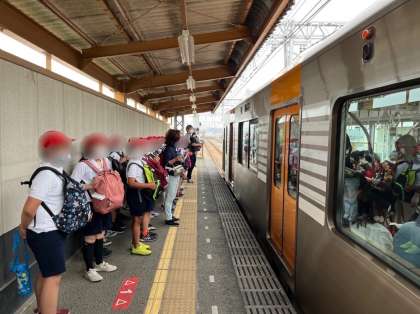 5年生春の遠足の行き先は、「布引の滝」です。今日は暑すぎるこのともなく、遠足日和です。今から阪神電車に乗って神戸方面へ出発です。