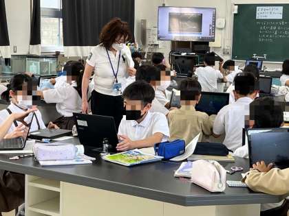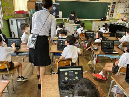 5年生は、理科室で学習を行っていました。5年生もタブレットを使って学習を進めていましたが、さすが5年生は、自分で使うことができていました。