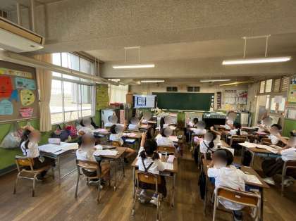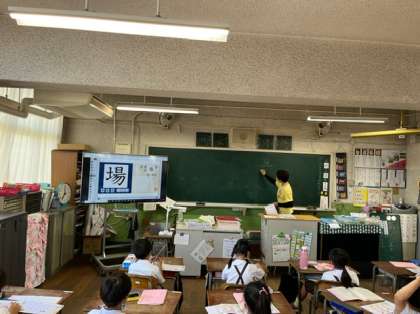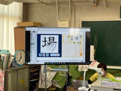 新しい漢字の学習です。2年生になると少しずつ画数の多い漢字を学習していきます。長くするところ、短くするところなどを先生と一緒に確かめました。そしてデジタル教材と書空書きで筆順を練習しました。