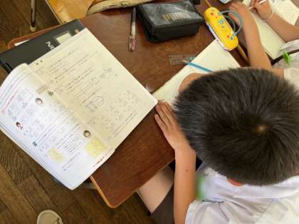少人数に分かれて、小数のかけ算を学習しています。すでに学習のまとめにさしかかり、それぞれでどんどん問題を解いていきました。はじめは大変だけど、慣れてくると集中力も高まり問題がすらすら解けていきますね。その調子でがんばって!