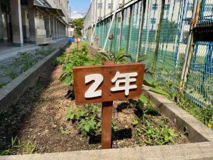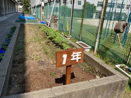 本校では、1年生から6年生まで生活科や理科の学習で植物を育てます。今日はその植物ではなく、学年の目印の看板を紹介します。管理作業員さんが各学年や委員会の看板を新しく作ってくれました。きれいな看板だと自分たちの学習園という自覚が一層高まりますね。