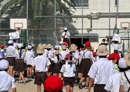 たてわり班で答えを相談しながら、〇か×の方に移動していきます。