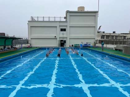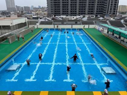プール水泳の学習です。今日は、水慣れをしてから、プールを縦に使って、けのび、バタ足、クロールの練習をしました。子ども達は個々の目標を意識しながら頑張りました。