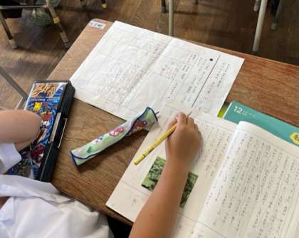2年生は、国語で、ワークシートを活用して、教材文の読み取り学習をしていました。
