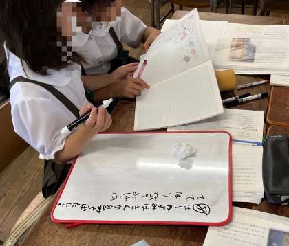 3年生は、国語でグループ学習を進めています。グループでいろいろ話し合いながら、段落の内容をまとめていました。