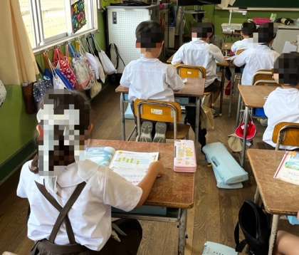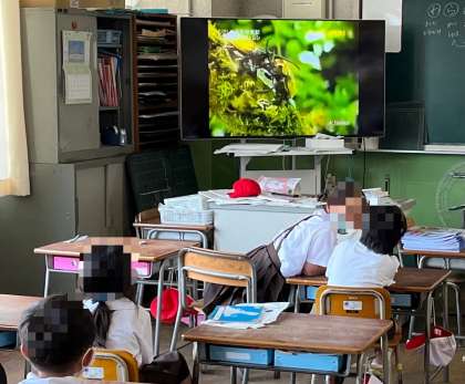 1年生は、生活科で、大型テレビを活用して、虫について学習していました。