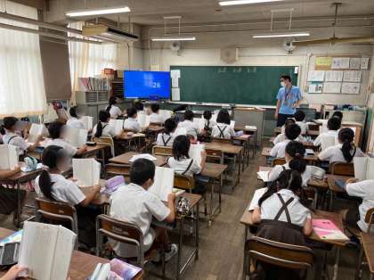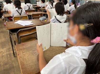 「紙ひこうき」という詩を全員で音読しました。連ごとに分けたり、速さを変えたりして音読をしながら詩のリズムを感じ取ることができました。音読する姿勢も素晴らしいです。
