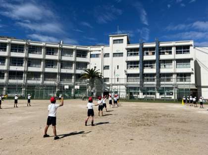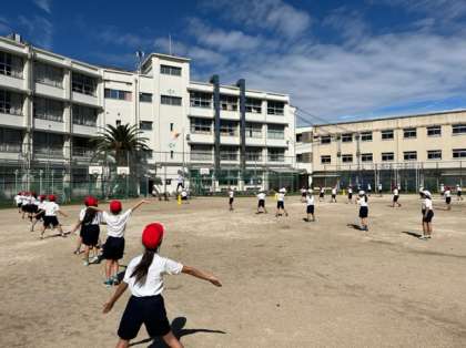 朝は雨が降っていましたが、空はすっかり晴れわたりました。運動場では、今日もダンスの練習です。大きな動きについてはできるようになってきたので、細かい動きについても確認していきました。