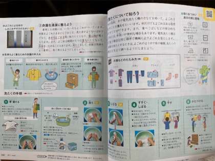 衣服を清潔に整えることについて学習しています。衣服が汚れると、汗や汚れを吸い取りにくくなり、着心地も悪くなります。そこで、今日は洗濯の仕方について学習しました。これで、洗濯機がなくても洗濯液を作って手洗いができますね。