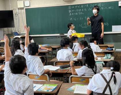 3年生は、算数で、わり算の学習をしていました。あまりがあるわり算なので、答えが出した後の確かめも大切です。