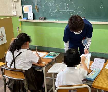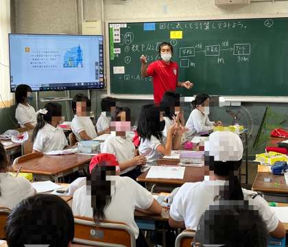 4年生も、算数の学習をしていました。4年生は「何倍」という言葉をヒントにしながら問題に取り組んでいました。