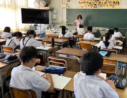 5年生は、算数で「分数のたし算・引き算」を学習していました。1クラスを半分に分け少人数で学習しています。クラスの人数が減るので、細やかに指導できます。