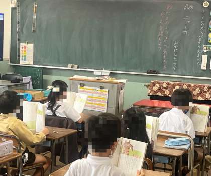 2年生は、国語で音読していました。適切な声の大きさと速さで読むことができていました。