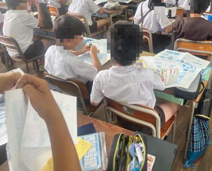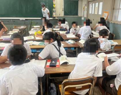 4年生も、国語です。戦争を題材にして物語文の学習をしていました。戦争についてグループや周りの友達と話し合いをしながら、いろいろな意見を出し合っていました。