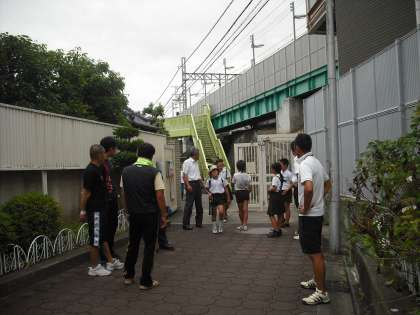 毎月初に先生方総出で赤門と白門に立ち、子どもたちのお迎え