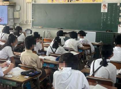 5年生は、道徳の学習をしていました。登場人物がなぜそのような行動をとったのか等、ペアで話し合って意見を出し合っていました。