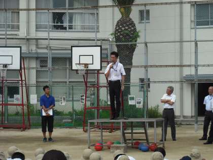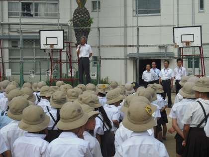 区役所から区長さんや副区長さんをはじめ、教育支援担当の方々、伝法小芝生化実行委員会委員長さん、PTA役員さん、保護者のみなさんがお忙しい中来校してくれた