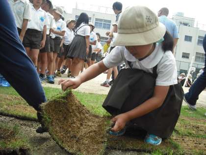 いろんな人のおかげで伝法の芝生が完成した これからもみんなと一緒に育てていってもらうんだよ