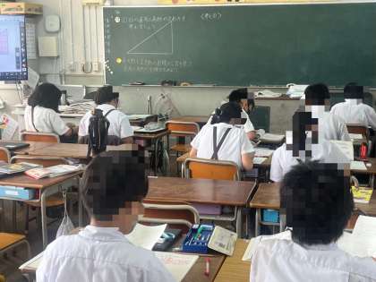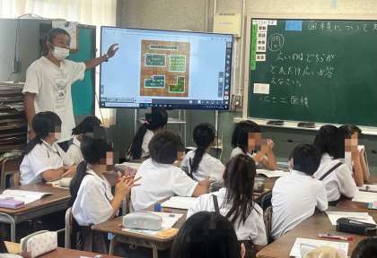 4年生は、算数で、面積について学習していました。見た目や感覚で広さを考えるのではなく、計算して面積で比べる方法について話し合っていました。