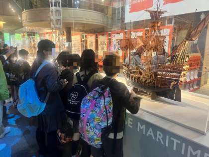 海洋博物館とカワサキワールドでは、班ごとに見学しました。海洋・運輸・船のしくみなどについてメモをとったり、体験したりしながら楽しく活動しました。