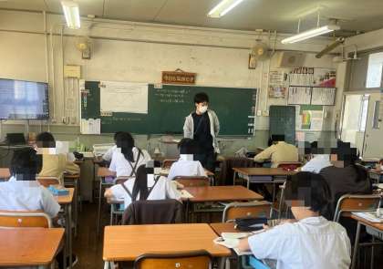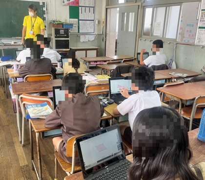 5年生は、算数で、平行四辺形の面積について学習していました。どうしたら今まで習ったことを活かして求めることができるがをタブレットも活用しながら考えていました。