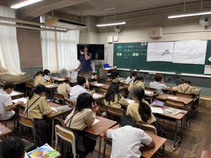 4年生は、理科の時間です。動物のからだのつくりを調べながら、他の動物も人間と同じように動くかを考えました。子どもたちからは「関節や筋肉があるから人間と同じように動くことができる」という意見が出ました。