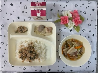 今日の給食には、食べやすくくだいたひきわり大豆を使っています。