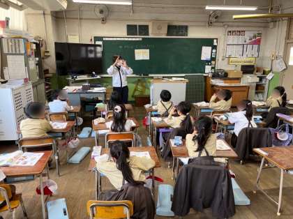 1年生は、音楽で旋律が呼びかけあうおもしろさを感じながら聴く学習をしています。組曲「くるみわりにんぎょう」の行進曲を聞き、旋律を口ずさみました。口ずさむと音の長さや高さ、低さがわかりますね!