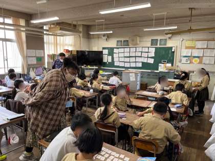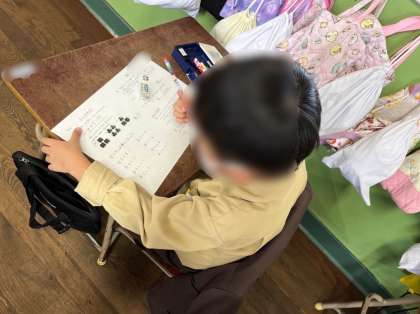 2年生は、かけ算のまとめプリントの学習です。問題を読んで、状況を説明している絵を選んだり、かけ算の計算をしたりと色々な問題に取り組みました。自作の九九カードを作って練習しているお友だちもいました。