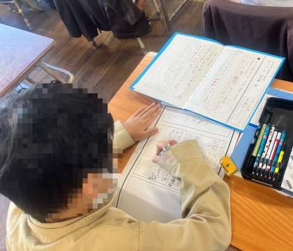 2年生も国語の学習で、物語文の内容をワークシートにまとめていました。物語の要点を考えながら自分なりにまとめていました。