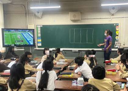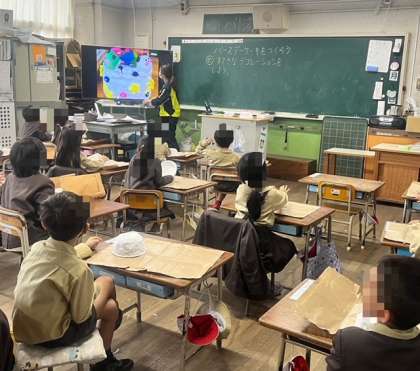 4年生は、体育ですが、雨で運動場が使えないこともあり、教室で次の時間から行う「フラッグフットボール」について、ルールややり方について学習していました。