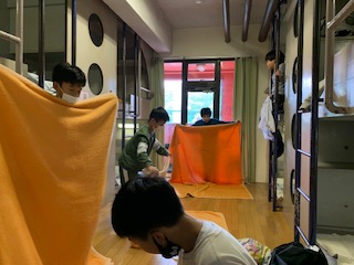 朝ご飯食べ、それぞれ部屋を片付けて2日目の野外活動スタートです。