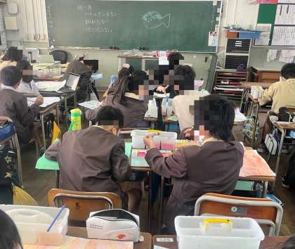 5年生は、図工で、絵画制作をしていました。サインペン等で細かく線を描きながら、色塗りもとても丁寧にしていました。出来上がりが楽しみです。