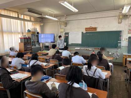 6年生は算数の学習です。「比例のグラフからいろいろなことをよみとろう」という学習のめあてを立て、グラフからわかることを調べました。グラフから同じ速さで走り続けていることがわかるので、走った道のりやかかった時間のどちらかがわかれば、グラフから求める道のりや時間もすぐにわかりますね。