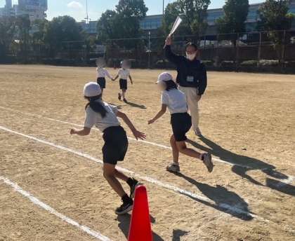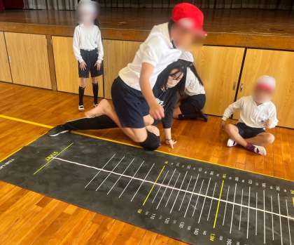 50m走と立ち幅跳びの測定をしています。走ったり、跳んだりする姿は一層力強くなっているように思えます。