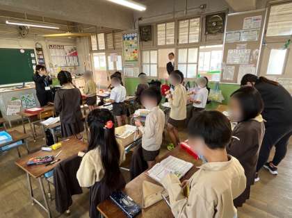 1年生はひき算の学習です。これまでは計算の仕方を練習してきましたが、今日は文章を読んで式を立てます。どちらが多いかを見つけるときもひき算を使うとできることに気づきました。