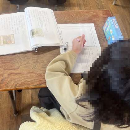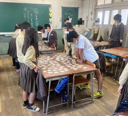 4年生は、百人一首をしていました。すぐ札がとられるグループもあれば、なかなか見つからないグループもあって、盛り上がっていました。