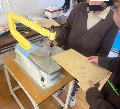 5年生は、図工の学習で、伝言板の制作をしていました。下絵を元に、電動糸のこぎりやキリ等を使って、自分の思いを生かす工夫をしていました。