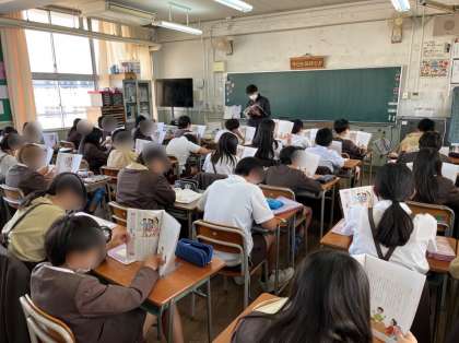1年生は、国語科の物語文「おとうとねずみチロ」の学習です。チロの気持ちを考えて音読した後は、手紙をもらったチロの気持ちを書きました。チロの気持ちを交流した後は、もう一度その気持ちをこめて音読しました。