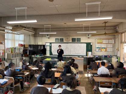 3年生は国語の学習です。「二学期にがんばったこと」と題して自らの学校生活をふり返り、作文を書きました。先生から「がんばったことを二つについて、はじめ・中・終わりを意識して作文を書こう」と声かけがありました。