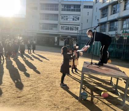 今日は、全校朝会で、夏休みの読書感想文と絵画作品で優秀な成績をおさめた子どもたちの表彰をしました。
