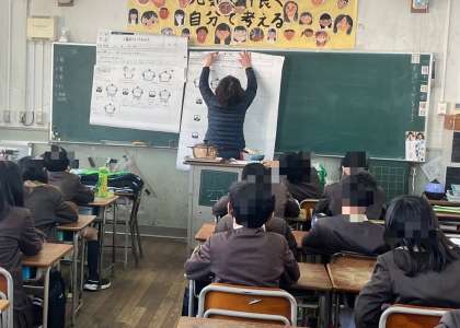 5年生は、家庭科で、先日収穫したお米を炊くために、ご飯の炊き方の学習をしていました。