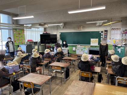 登下校の班で各教室に集まり、冬休みの過ごし方の反省や3学期の集団登校について話し合いました。話し合いが終わると集団下校で帰ります。
