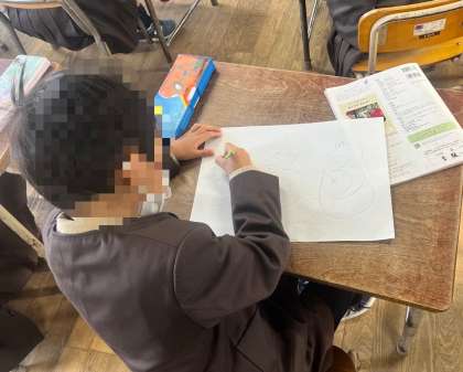 1年生は、歌を歌いながら、その歌詞に合わせて、絵を描いていました。何回も歌いながら楽しそうに取り組んでいました。